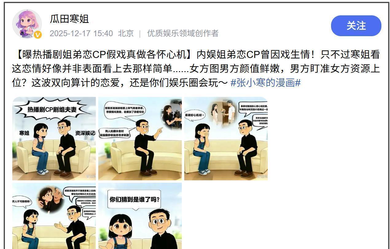 据说拍戏期间,女方主动加了不少亲密戏,明眼人都看得出来有点“上头”。男方呢,也不是省油的灯,一边享受姐姐的青睐,一边顺手借她的资源往上爬。俩人各取所需,配合得还挺默契。 有意思的是,女方看似清纯无害,其实家底不薄,妥妥的富家女出身。她爸早年是商界大佬,身份体面,影响力不小。而她在圈里的情史也一直没断过,从文章到秦昊,传过的绯闻能列一长串。